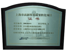 HSCCC上海市高新技術成果轉化項目證書