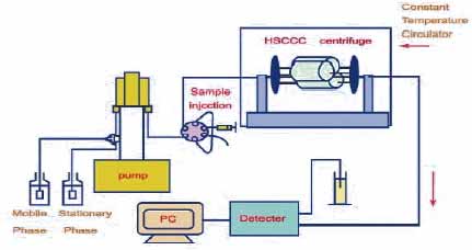 高速逆流色譜 ( high-speed countercurrent chromatography , HSCCC )是 20 世紀 80 年代發展起來的一種連續高效的液—液分配色譜分離技術, 它不用任何固態的支撐物或載體。 它利用兩相溶劑體系在高速旋轉的螺旋管內建立起一種特殊的單向性流體動力學平衡,當其中一相作為固定相,另一相作為流動相,在連續洗脫的過程中能保留大量固定相。